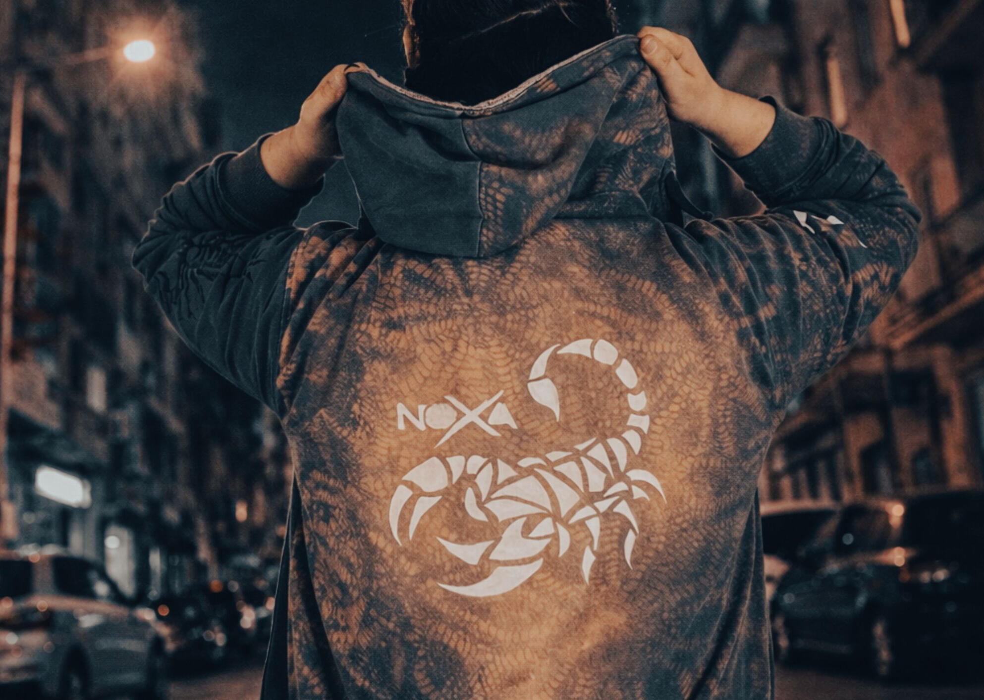 NOXA trasforma capi attraverso tecniche miste e interventi manuali. Bleach, colore su tessuto, DTF, stencil, cuciture e applicazioni diventano pezzi unici, custom e identità da indossare.